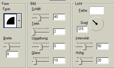Gehe nun wieder auf Auswahl/frei und wende den gleichen Aussparungseffekt an . Nun gehe auf Effekte/3D Effekte/Innenfaser und wende folgende Einstellungen an :