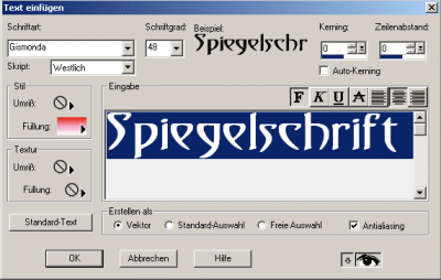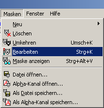 Der Text mit der umgedrehten Schrift wird nun unsichtbar. Um diesen Text zu bearbeiten muß man nun auf den Menüpunkt Masken - Bearbeiten gehen