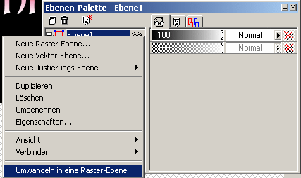 Wandel die Ebene von der Schrift um in eine Raster-Ebene.