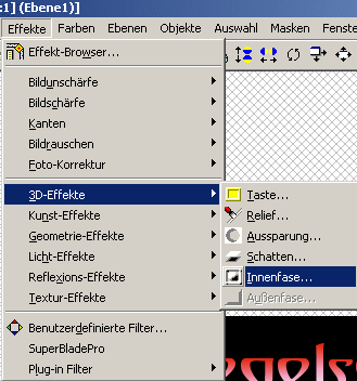 Nun gehe zu Effekte - 3D-Effekte - Innenfaser