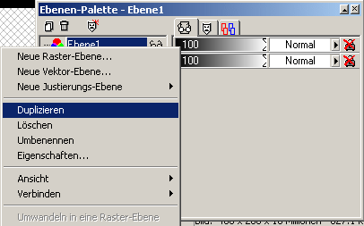 Markiere jetzt die Text-Ebene und Dupliziere über rechte Maustaste Kontextmenü